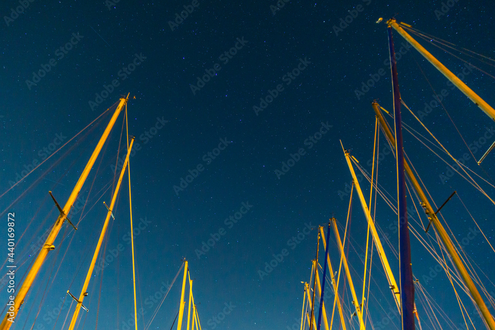 Samolepka Big Dipper constellation on the night sky between masts of sailing boats, Nether