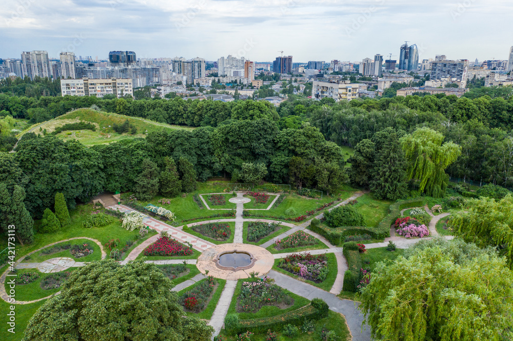 Samolepka Garden with roses in the park, aerial view.