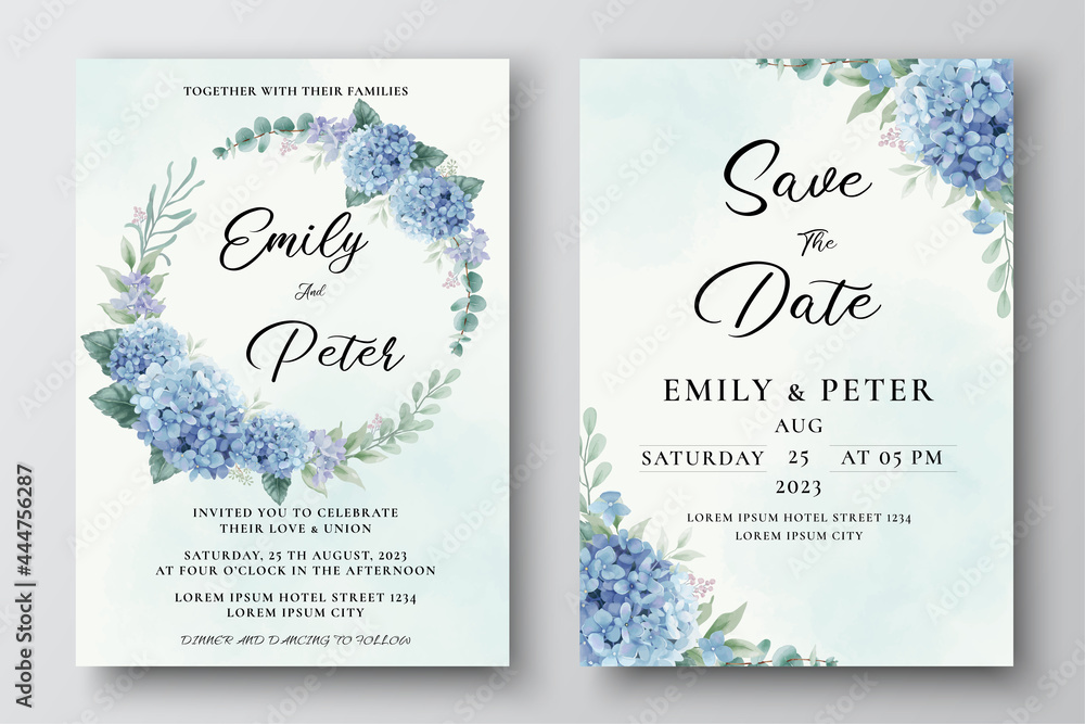 Samolepka Wedding Invitation Template with Blue Hydrangea