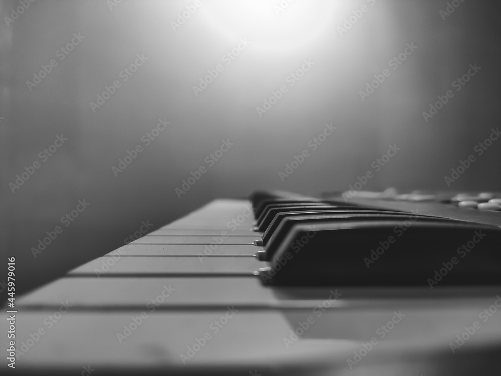 Samolepka Close up Black and White stock photograph of a Piano keyboard and notes for play