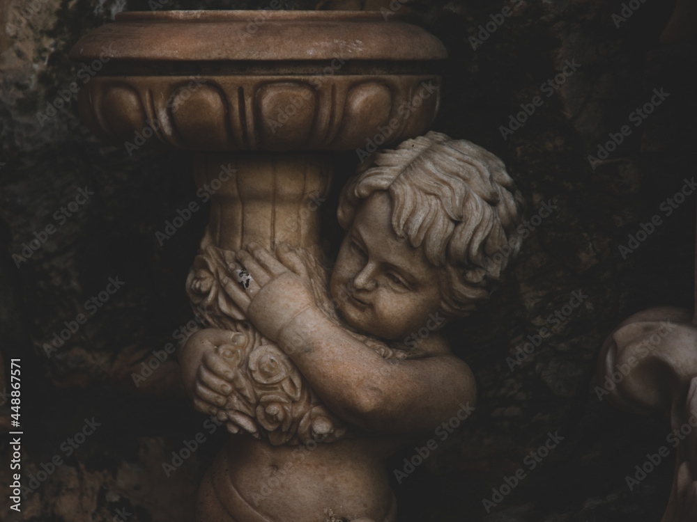 Samolepka Closeup of a cherubim sculpture holding a birdbath