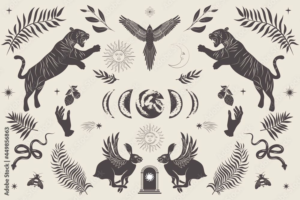 Samolepka Illiustrated Poster with Wild animals and mythology creature, plant and astrology element