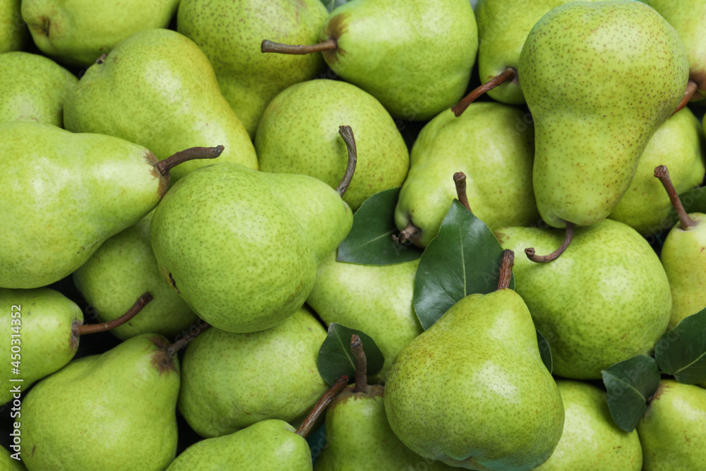 Samolepka Many fresh ripe pears as background, closeup