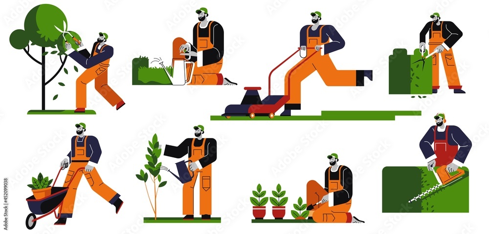 Samolepka Gardening man cutting tree leaves, bushes twigs
