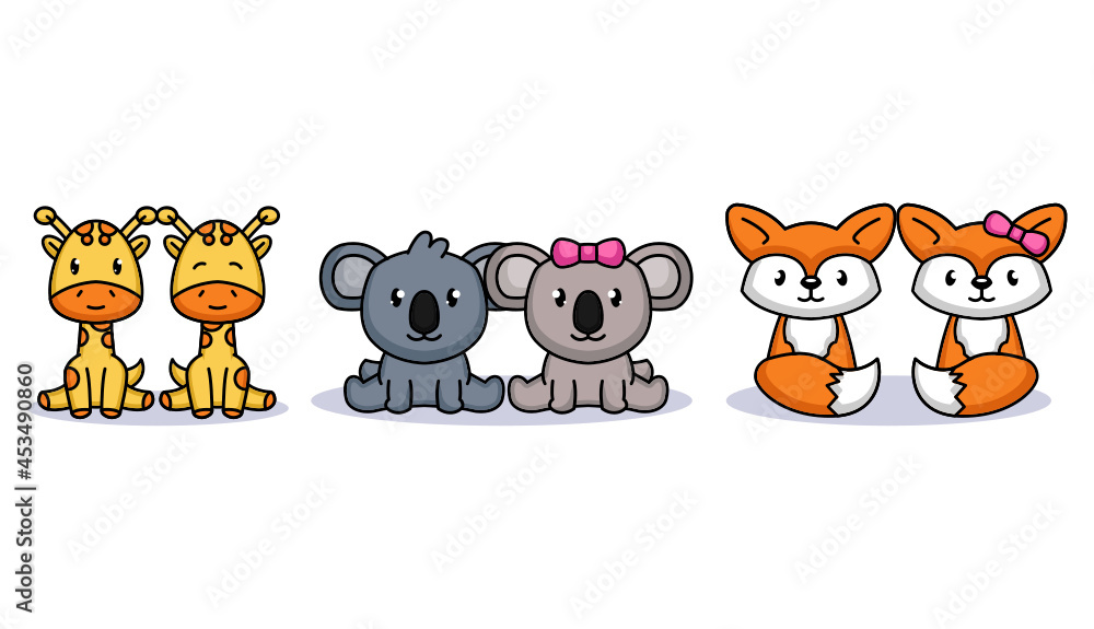 Samolepka Set of cute couple animals in Valentine's Day
