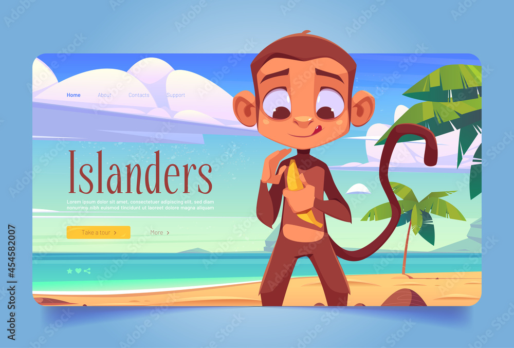 Samolepka Islanders banner with monkey on sand beach with palm trees