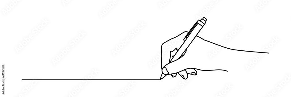Samolepka Hand holding ball pen and drawing a line, isolated on white background