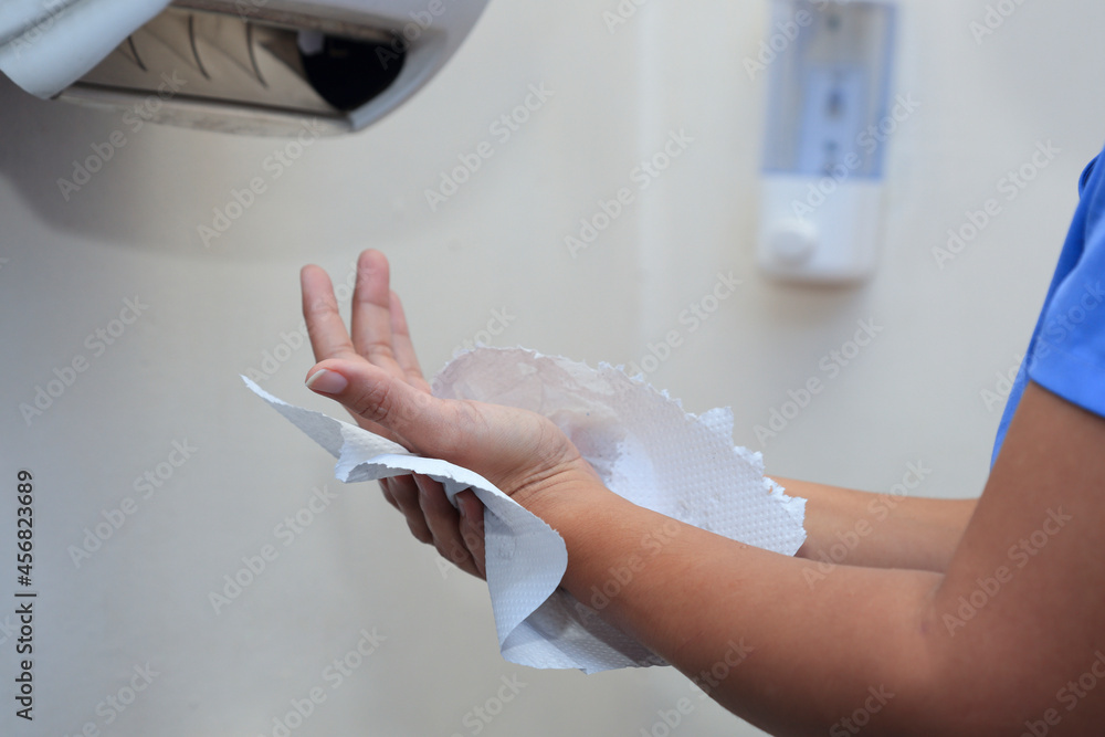 Samolepka Woman drying her hands with paper towel