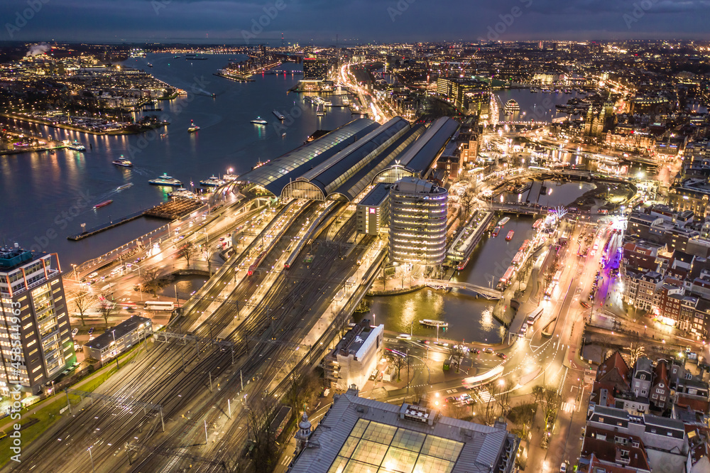 Samolepka Amsterdam Centraal Train Station at Night Aerial View