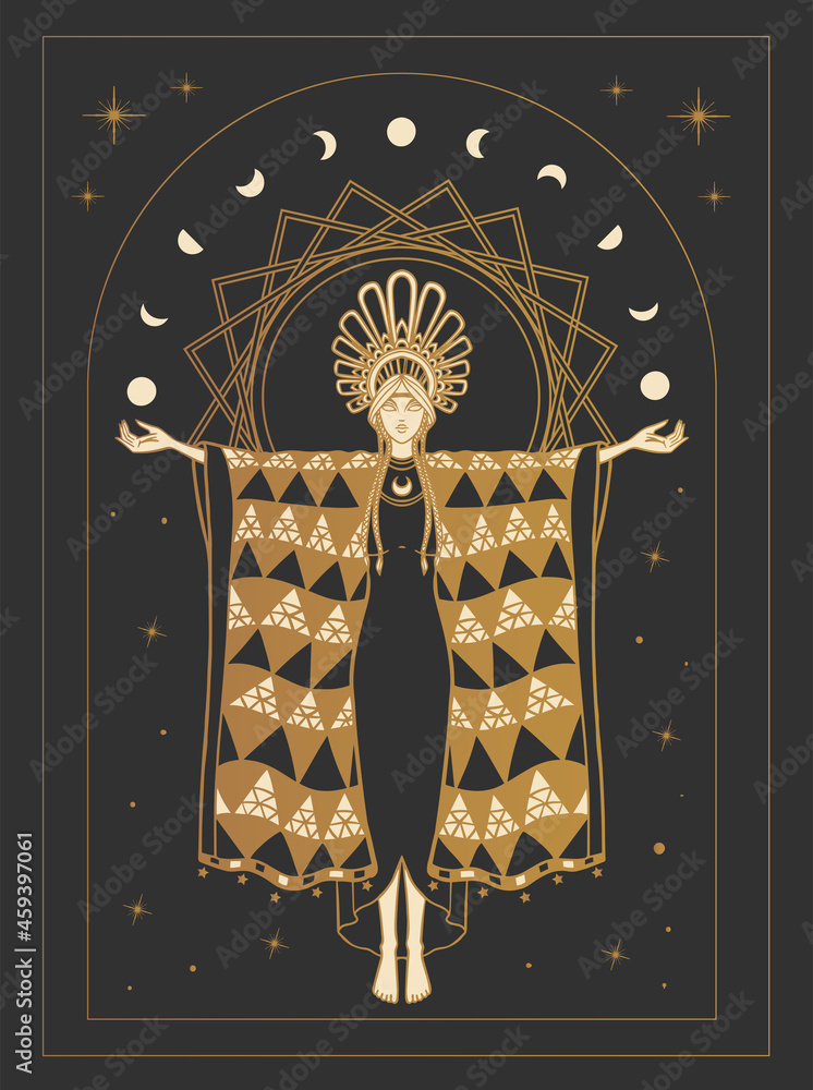 Samolepka Girl worships the moon, priestess Iphigenia