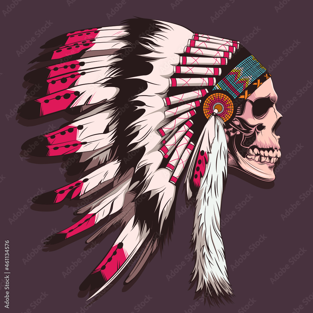 Samolepka skull in Native American headdress with feathers