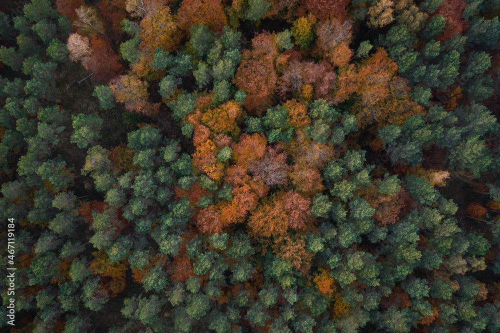 Samolepka Changing autumn forest colors ecosystem treetops drone woods forestry protection