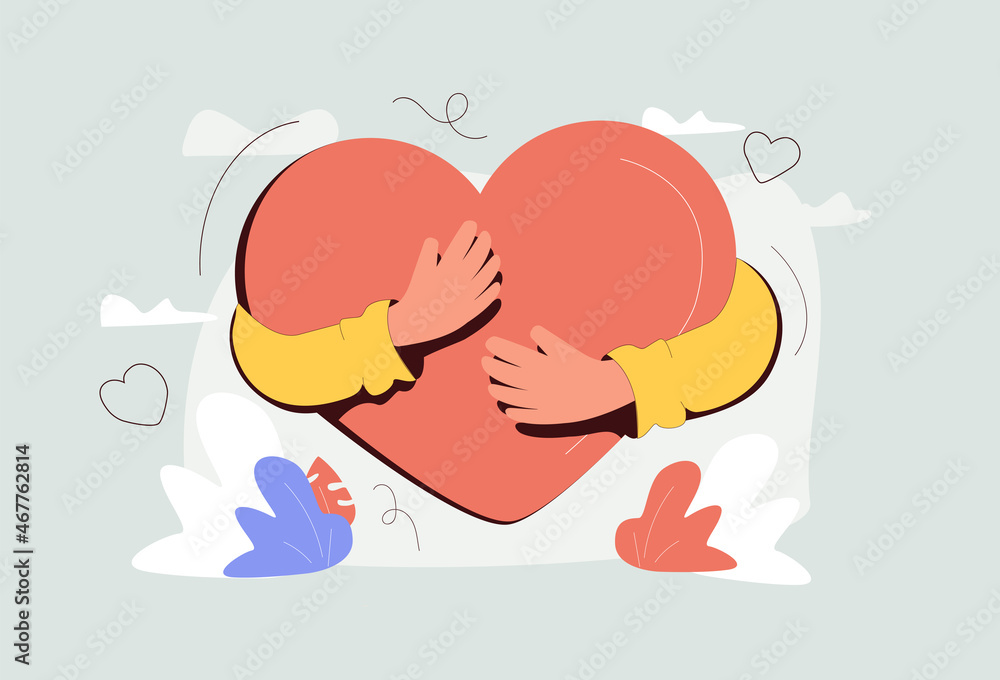 Samolepka Self love with heart hug as mental healthcare and esteem tiny person concept