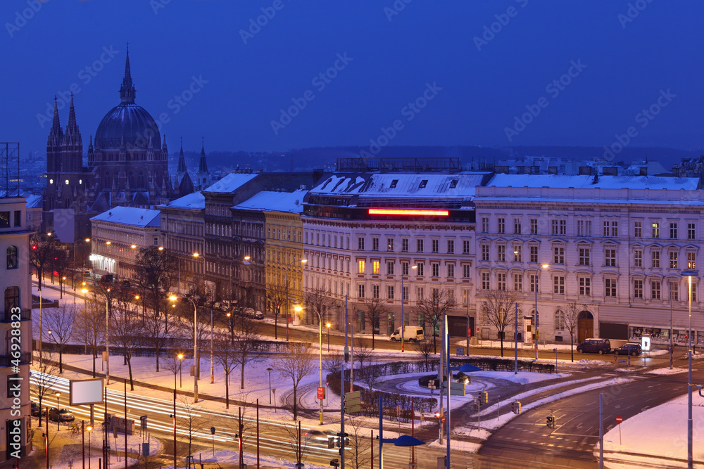 Samolepka Beautiful Europe square in Vienna at dark winter night, Austria.