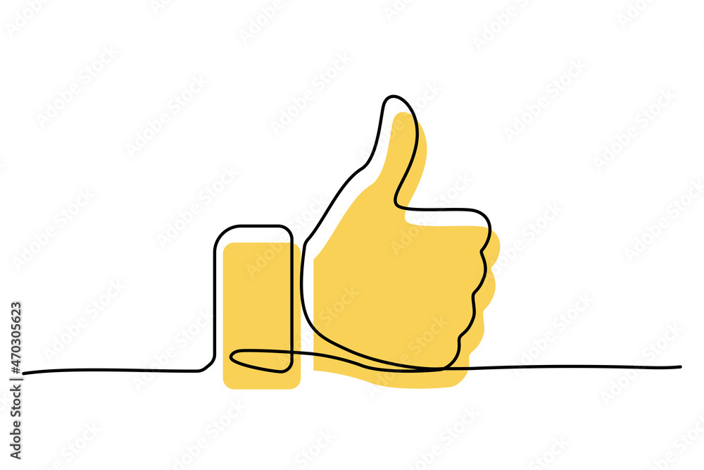 Samolepka Thumb up black line icon for clients good review, hand gesture with yellow color