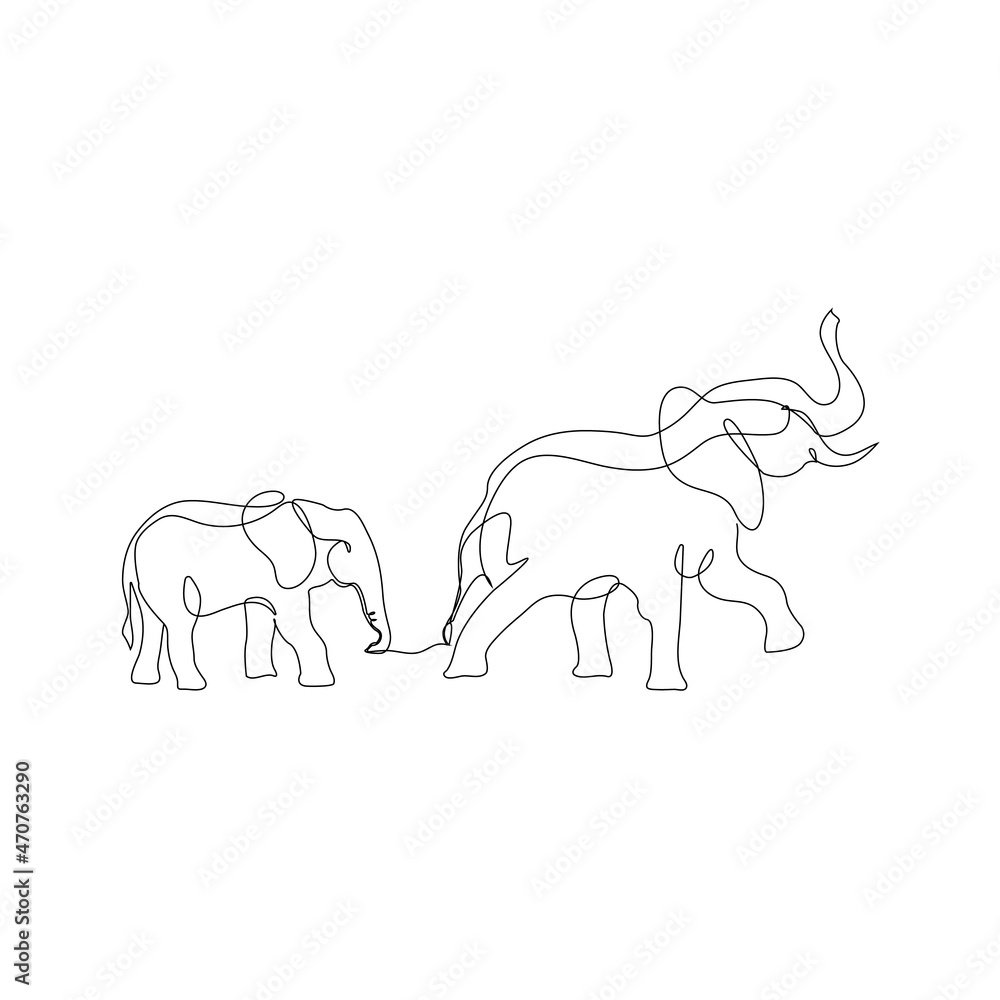 Samolepka Family Matters - Elephant Line art one line Abstract art,Elephant art print, Ele