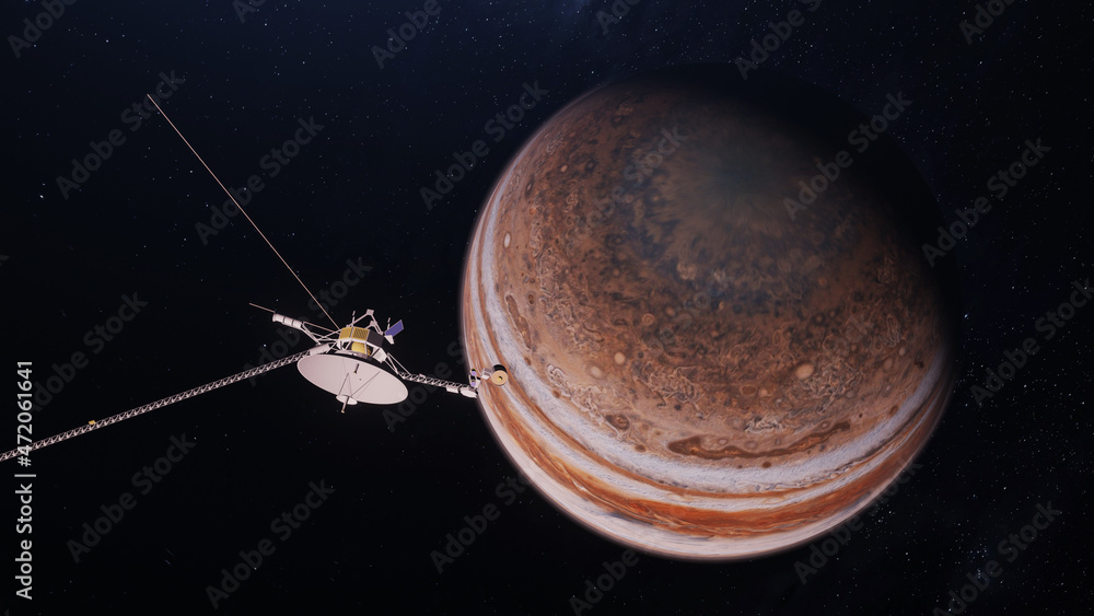 Samolepka Voyager Spacecraft Flyby Planet Jupiter 3D Rendering