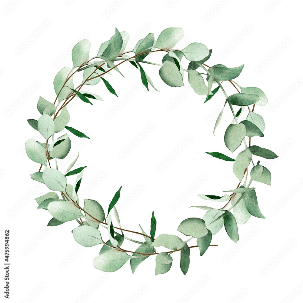 Samolepka Watercolor floral wreath with green eucalyptus leaves