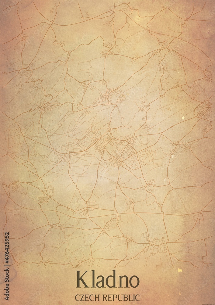 Samolepka Vintage map of Kladno Czech Republic.
