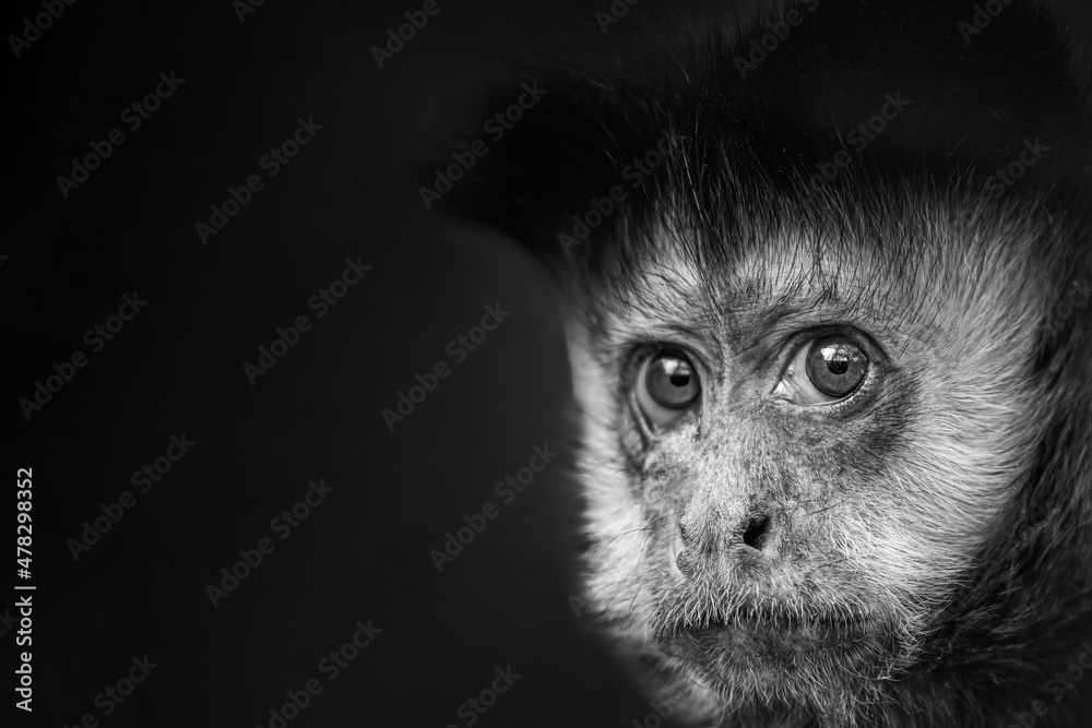 Samolepka Closeup of tufted capuchin monkey (Sapajus apella) isolated on black background
