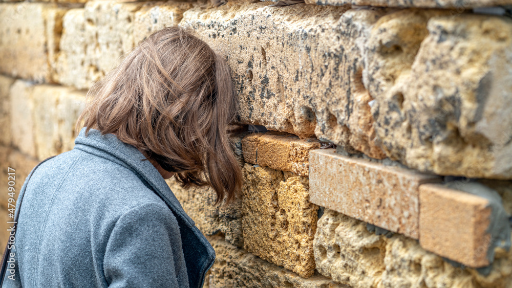 Samolepka Jewish tourist prays in the wailing wall of Jerusalem, Israel