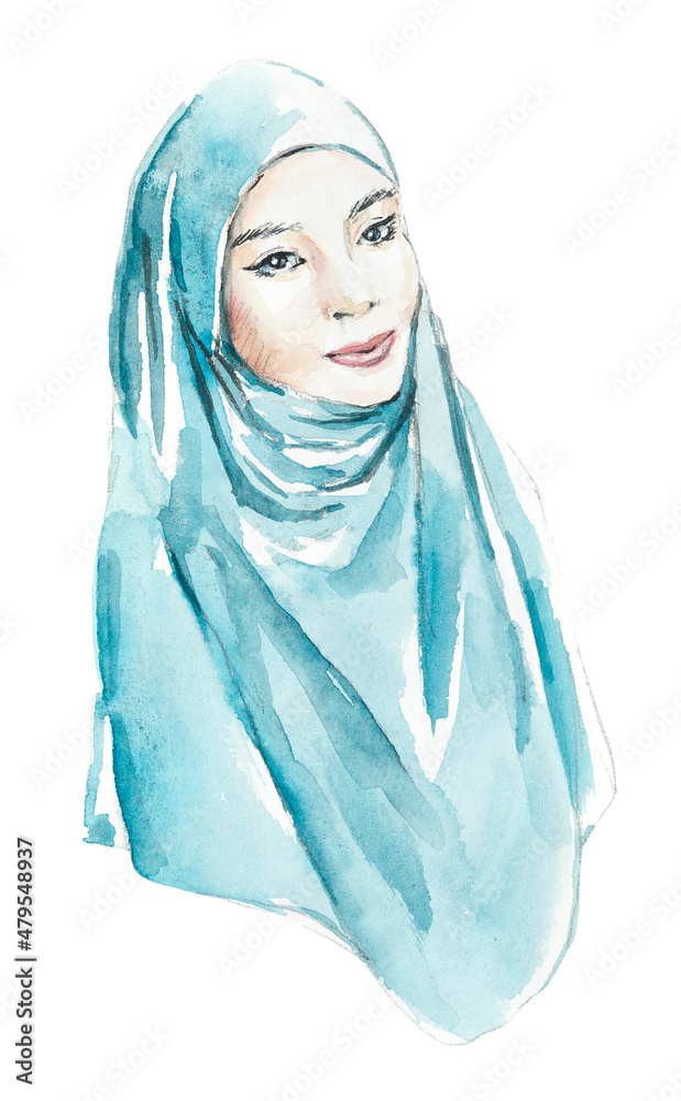 Samolepka Muslim Woman. Watercolor hand drwan illustration