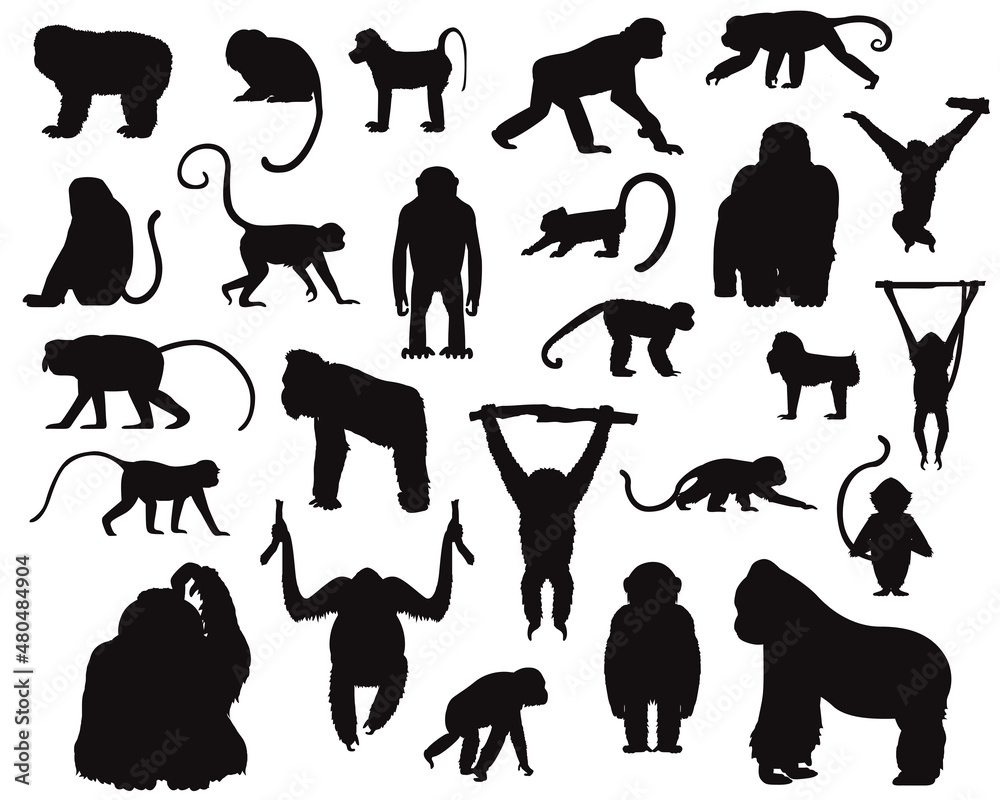 Samolepka Various Ape and Monkey Silhouettes Vector Illustration