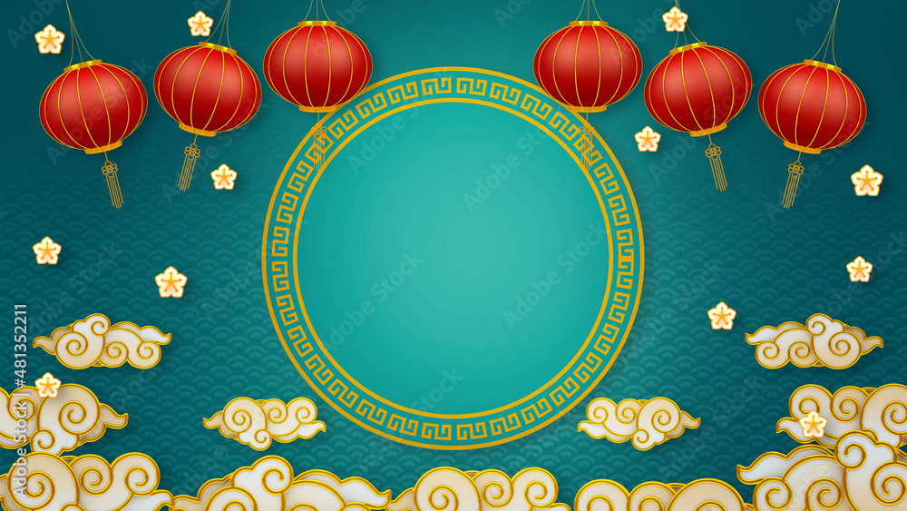 Samolepka Happy chinese new year for Party and Celebrations With Space for Message Isolated in Red Background