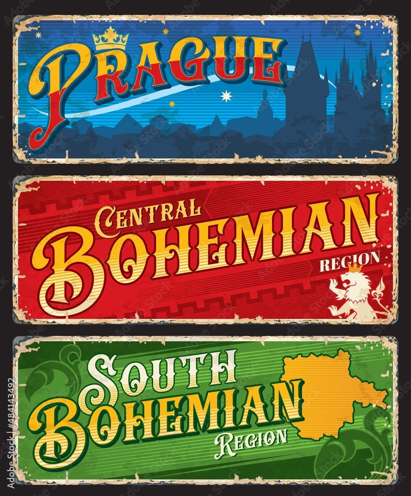 Samolepka Prague, Central and South Bohemian czech regions stickers and plates