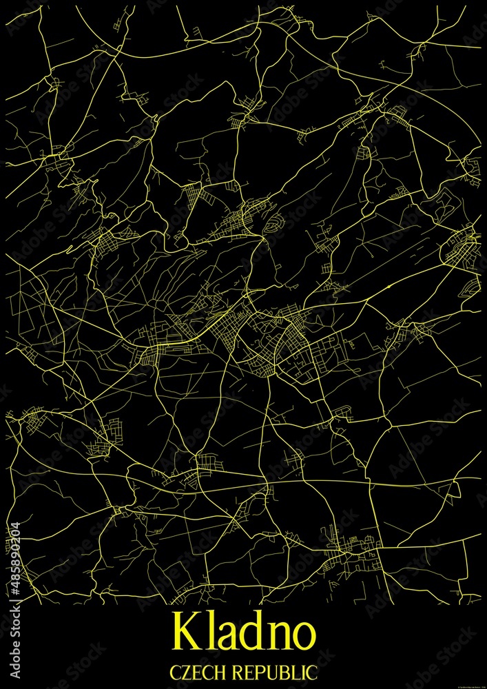 Samolepka Black and Yellow map of Kladno Czech Republic.