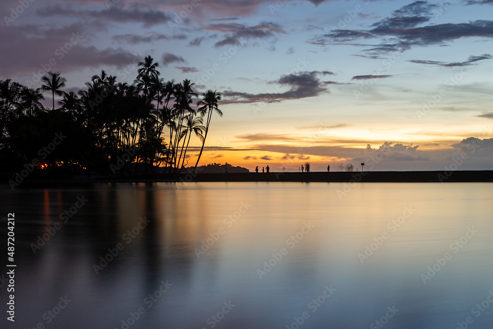 Samolepka Sunset with palms at Waikoloa Beach with colorful skies, Big Island, Hawaii