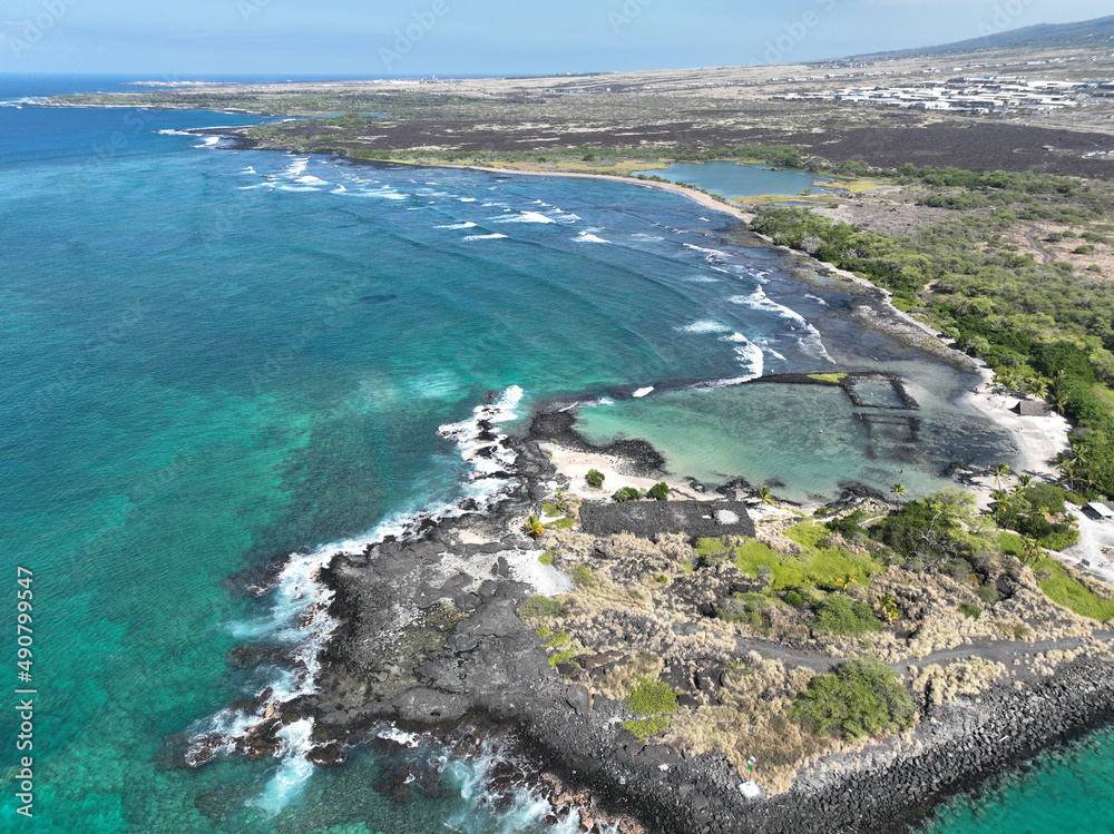 Samolepka Beautiful aerial of landscape Kaloko Fishpond Pond water in Hawaii with horizon