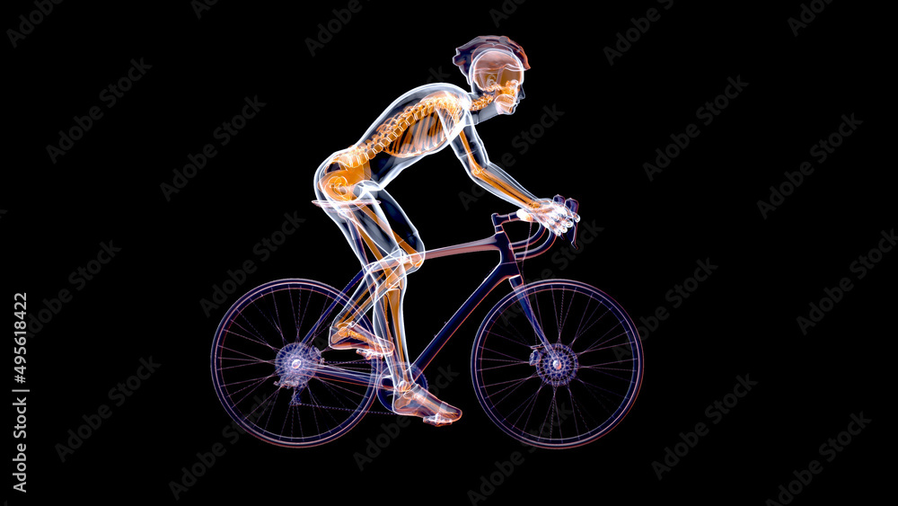 Samolepka 3D Illustration of an anatomy of a X-ray cyclist riding with abstract art