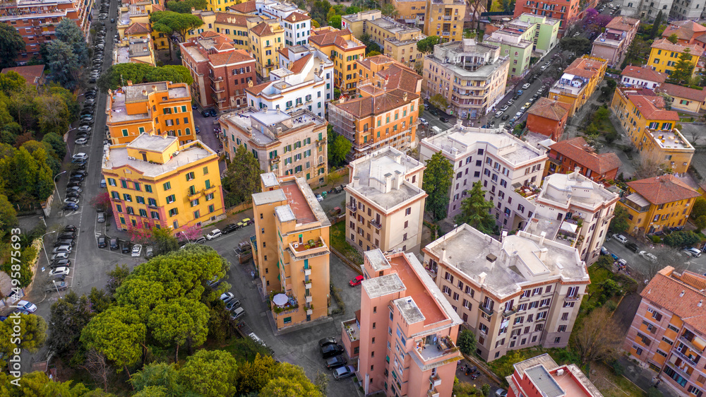 Samolepka Aerial view of Garbatella, an urban zone of Rome in Italy.