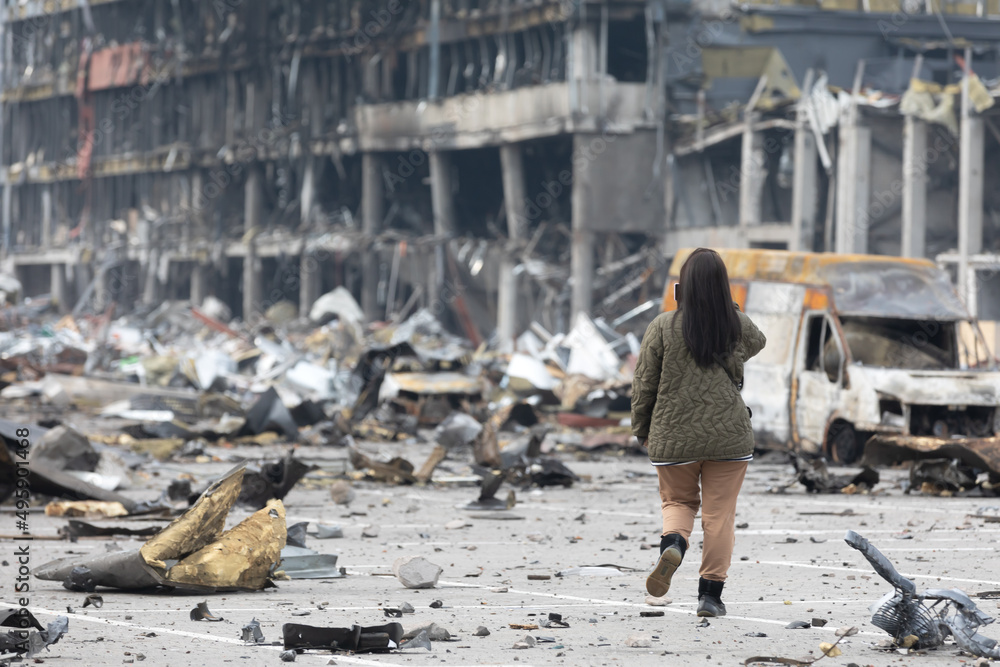Samolepka War in Ukraine. Damaged shopping center in Kyiv