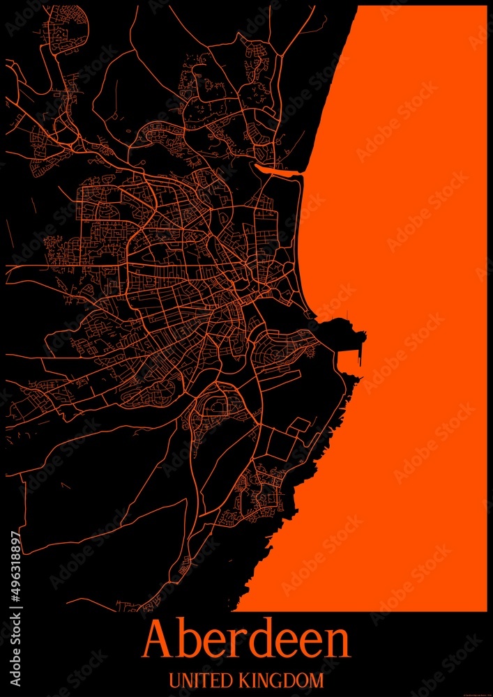 Samolepka Black and orange halloween map of Aberdeen United Kingdom