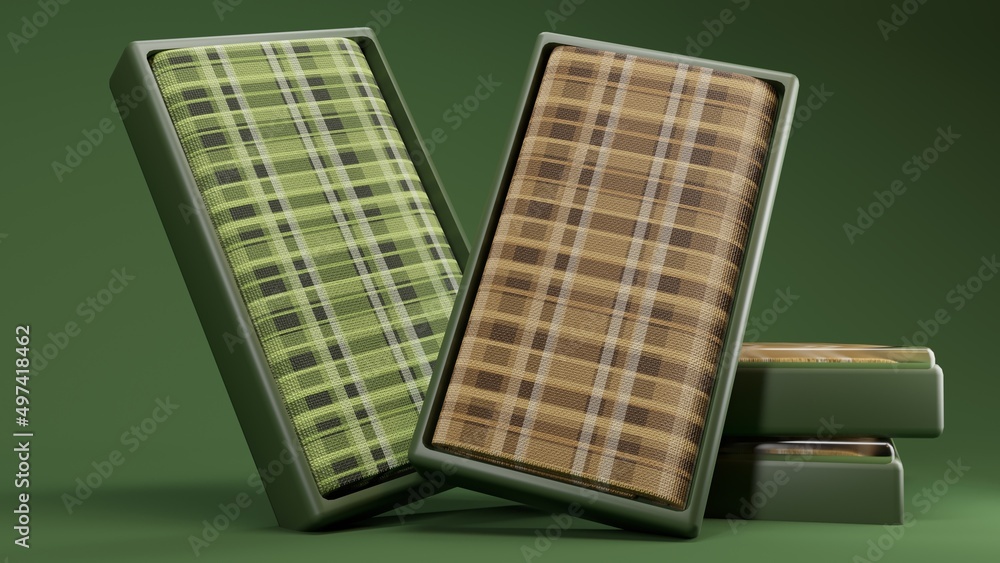 Samolepka green and brown indonesian sarong or sarung set in green background using 3D ill