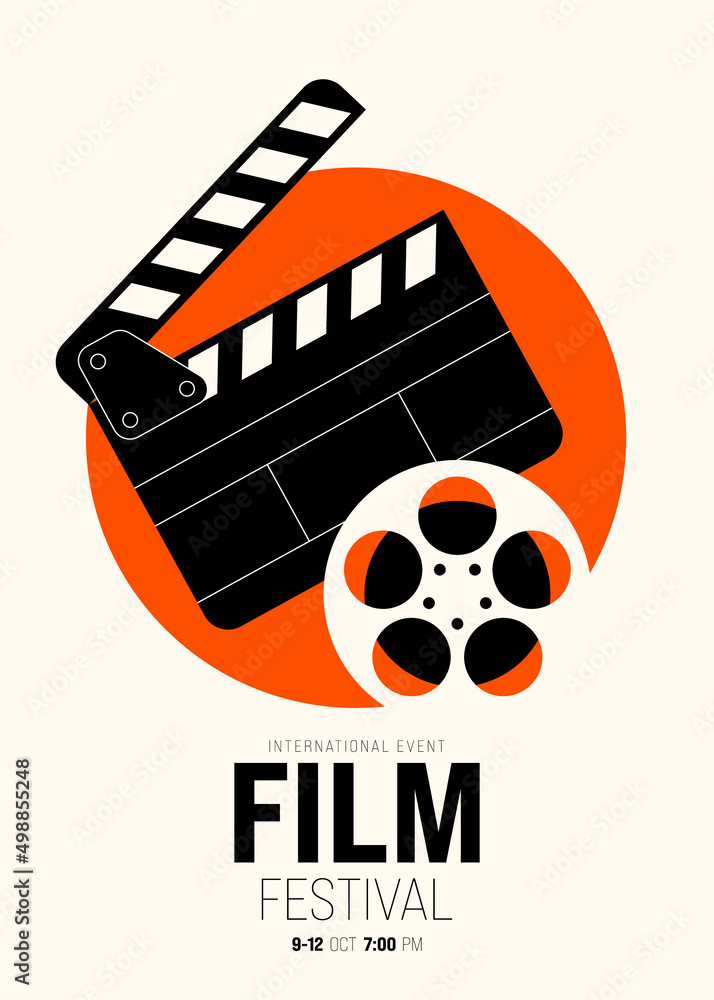 Samolepka Movie poster design template background with film reel and clapperboard