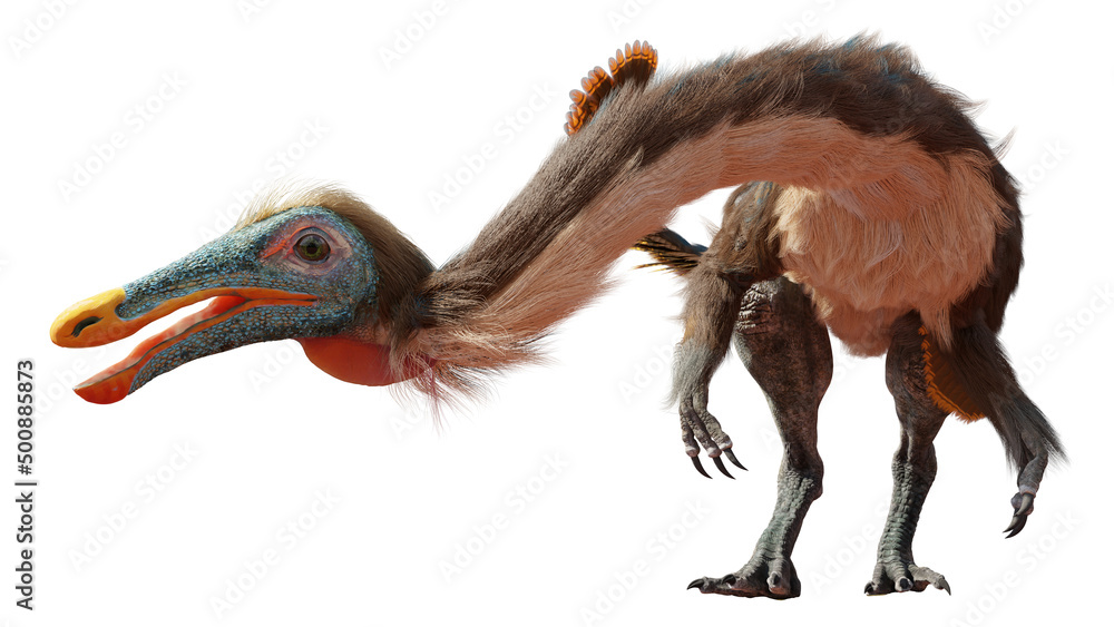 Samolepka Gallimimus, feathered dinosaur from the Late Cretaceous period, isolated on whit