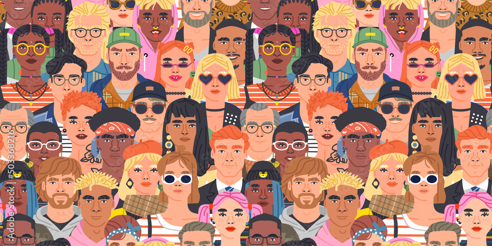 Samolepka Crowd of diverse people cartoon character group seamless pattern illustration