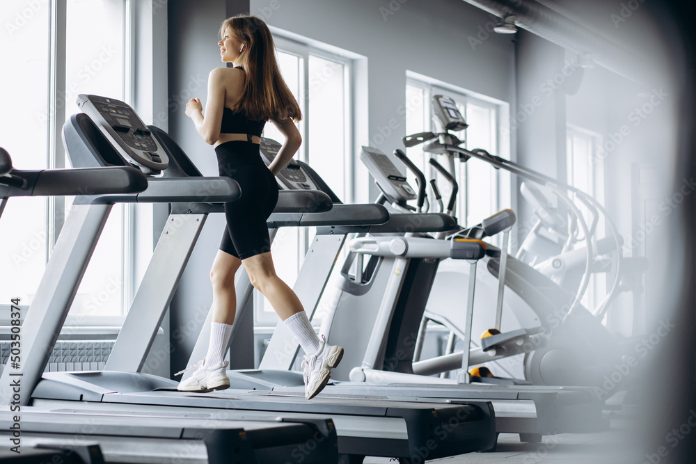 Samolepka Sporty woman running on treadmill at the gym
