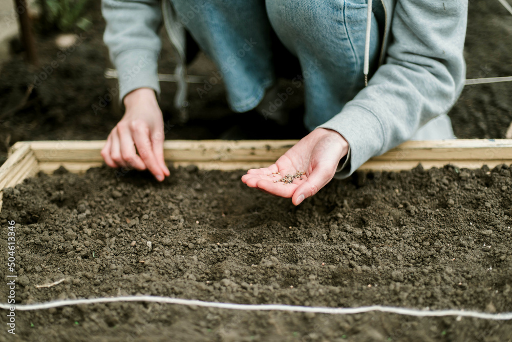 Samolepka Gardener sowing peas seeds in a vegetable bed
