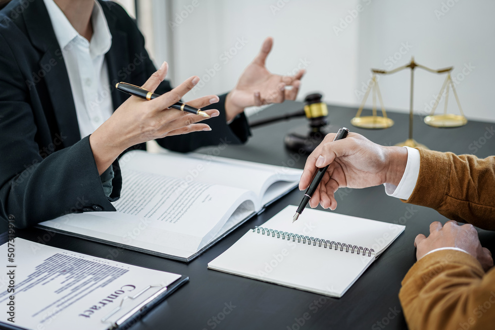Samolepka Male lawyer or notary working consulting and discussion to businesswoman client