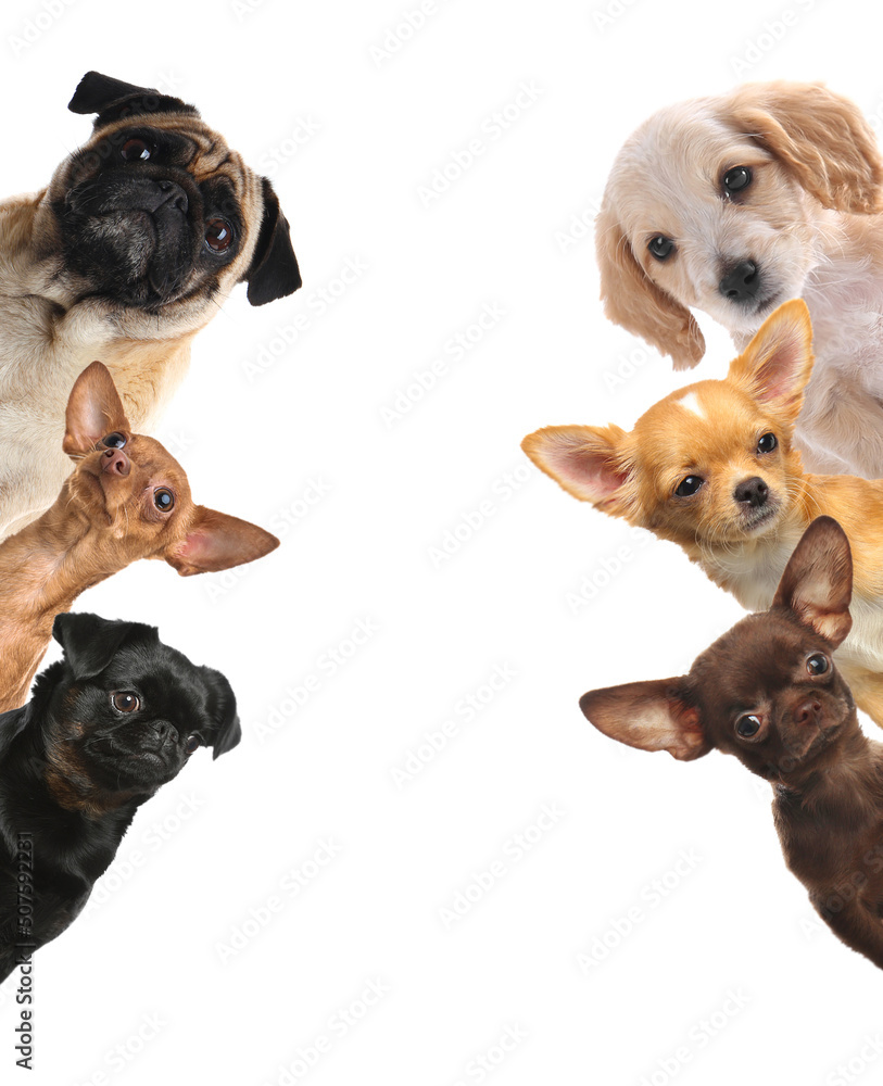 Samolepka Cute funny cats and dogs on white background