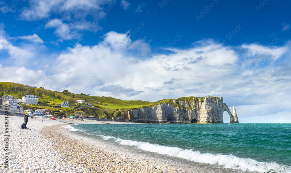 Samolepka Panoramic view of the beach of Etretat in Normandy, a popular french seaside tow