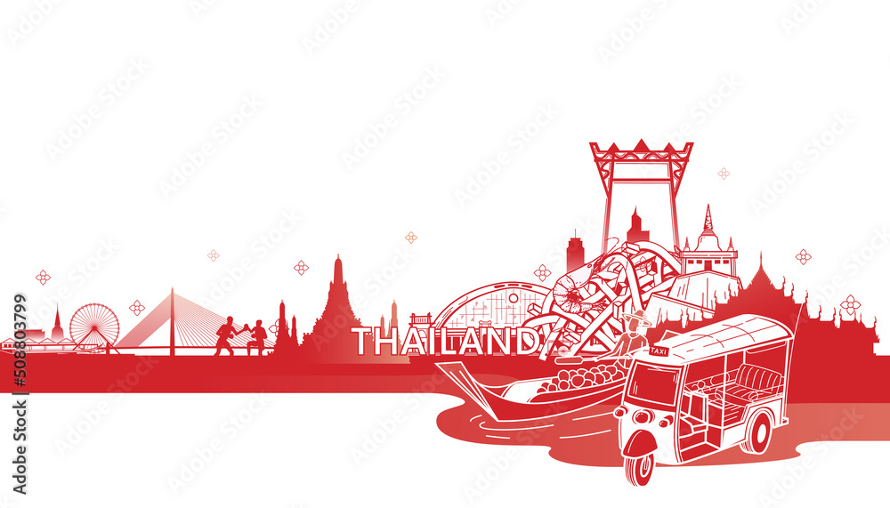 Samolepka The famous landmarks of bangkok, sightseeing in city, travel place, street food, Bangkok temple,