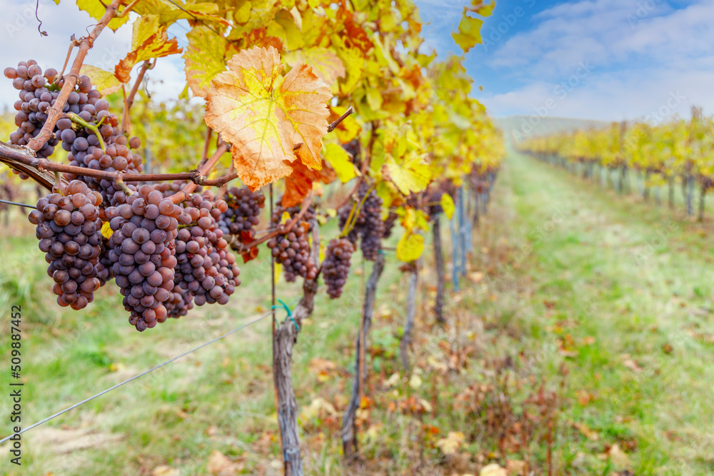 Samolepka Grapes in autumn vineyard, Southern Moravia, Czech Republic