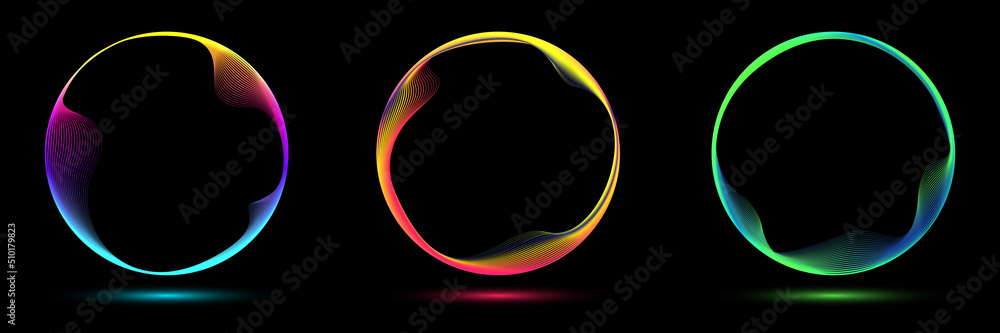 Samolepka Set of glowing neon color circles round curve shape with wavy dynamic lines