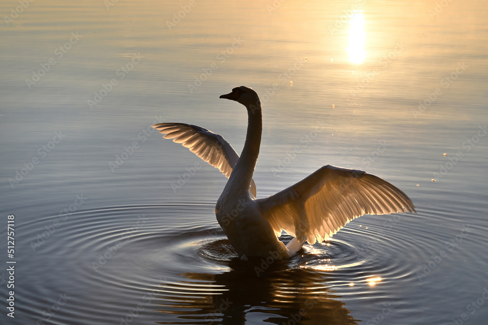 Samolepka Beautiful silhouette of a white swan in the light of the setting sun