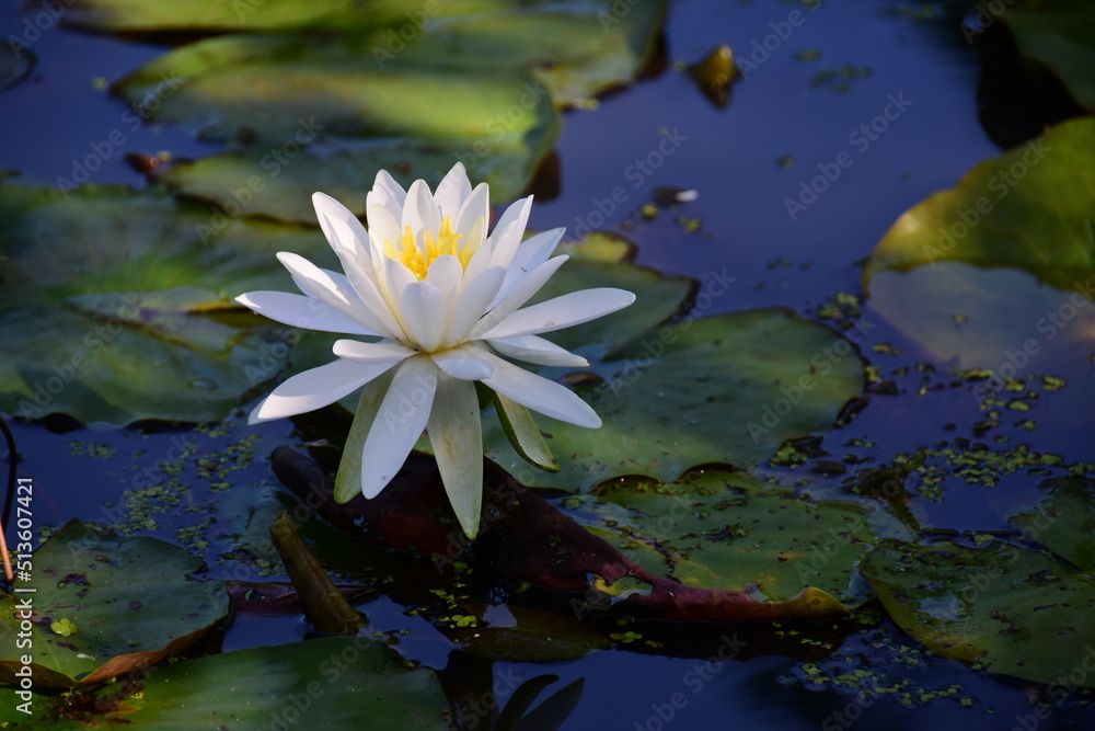 Samolepka A white water lilie opens its petals in a pond at Kenilworth Aquatic Gardens in Washington, DC